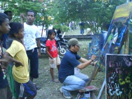 Beberapa seniman lukis baik kanvas maupun air brush seolah-olah beradu ekspresi. Dengan telaten mereka mengkespresikan apa yang ingin digambarkan. Nampak pasangan mata para pengunjung tak lepas dari jemari mereka yang bergerak pelan mewujudkan imajinasi. Jauh sedikit, ada beberapa seniman ikat alias tenun ikat yang turut serta memamerkan hasil karyanya. Dan disekitar seniman ikat berdiri panggung berukuran sedang. Dipanggung inilah para seniman tari, teater, sastra, musisi dan lain-lain menumpahkan segala macam ekspresi selera berseni mereka.